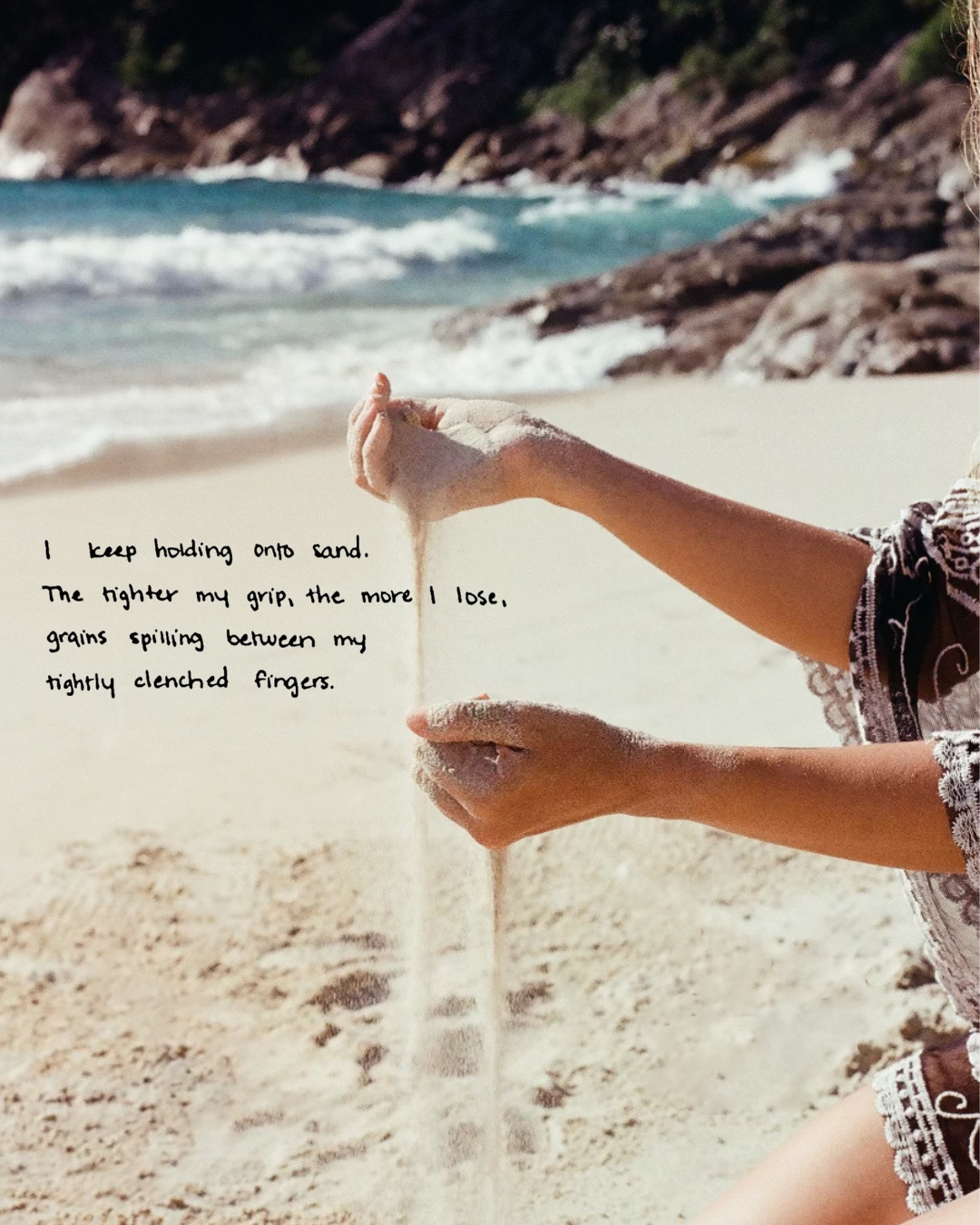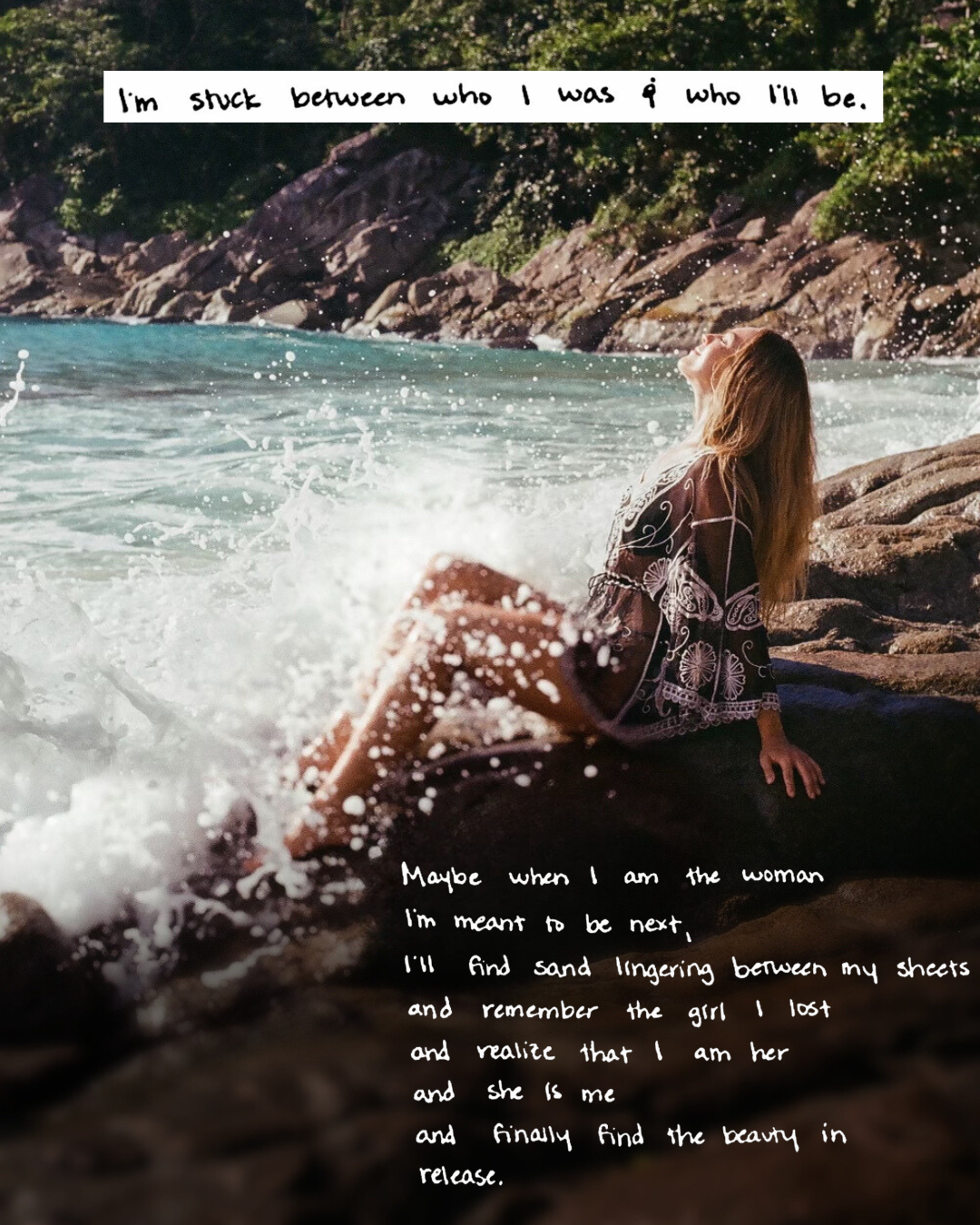 When I came to Thailand, I knew that I was stuck in an unhealthy loop of longing for the past, wishing I could be the girl I used to be. While here, I’ve done a lot of reflecting and have attempted to let go of her so I can be more present with this version of myself. The accompanying words are photo scans of lines from my journal wrestling with that. I’m hoping this will be relatable to anyone who has grieved past versions of themselves that died with the people they lost to “death or the sands of time.”